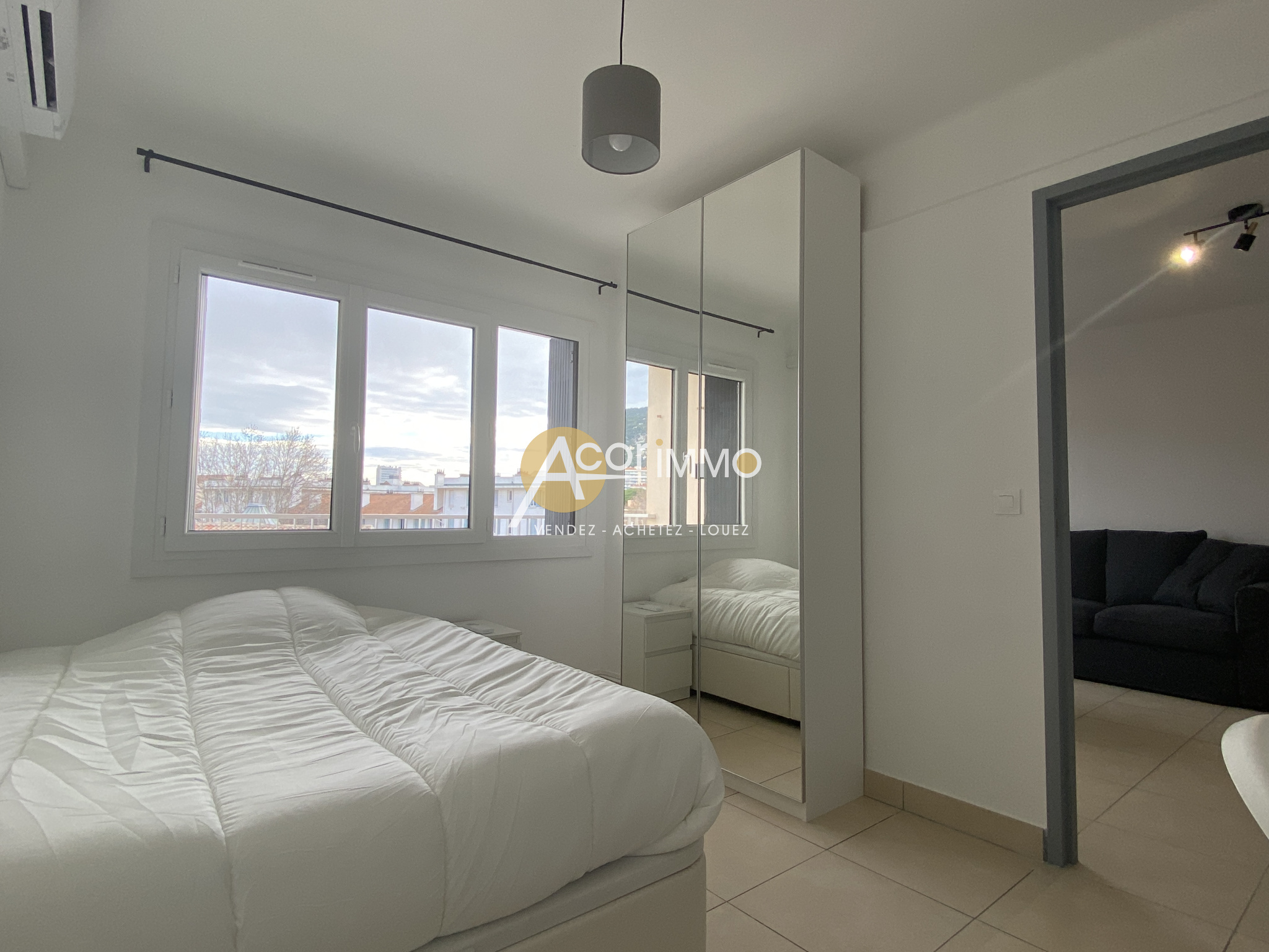 A Toulon Ouest, proche de l'Arsenal, Acor'Immo vous propose une chambre à louer, dans le cadre d'une colocation de 4 chambres, dans un appartement de 80m2 entièrement meublé et équipé pour un confort maximum. Dans la chambre : lit double / dressing / bureau / double vitrage / CLIMATISATION. Séjour donnant sur une belle terrasse, cuisine tout équipée, salle d'eau avec lave-linge et sèche-linge. WC séparés. Appartement intégralement rénové. Ascenseur et parking collectif. Disponible à partir du 20 février 2026. Loyer : 410 €/mois comprenant un forfait de 60€ pour l'eau, l'électricité et internet Dépôt de Garantie : 350 € Honoraires agence : 205 € dont 50€ de frais d'état des lieux