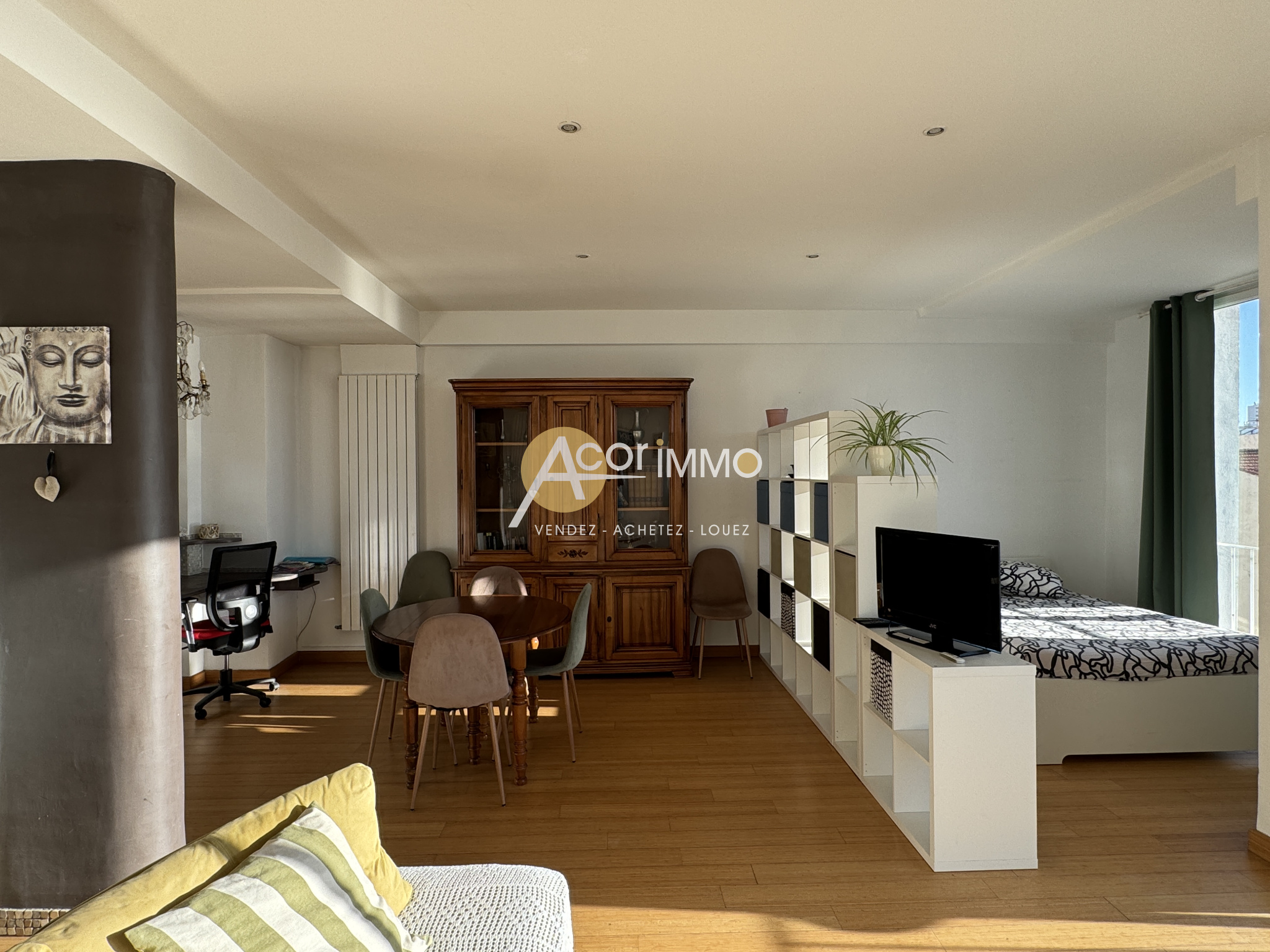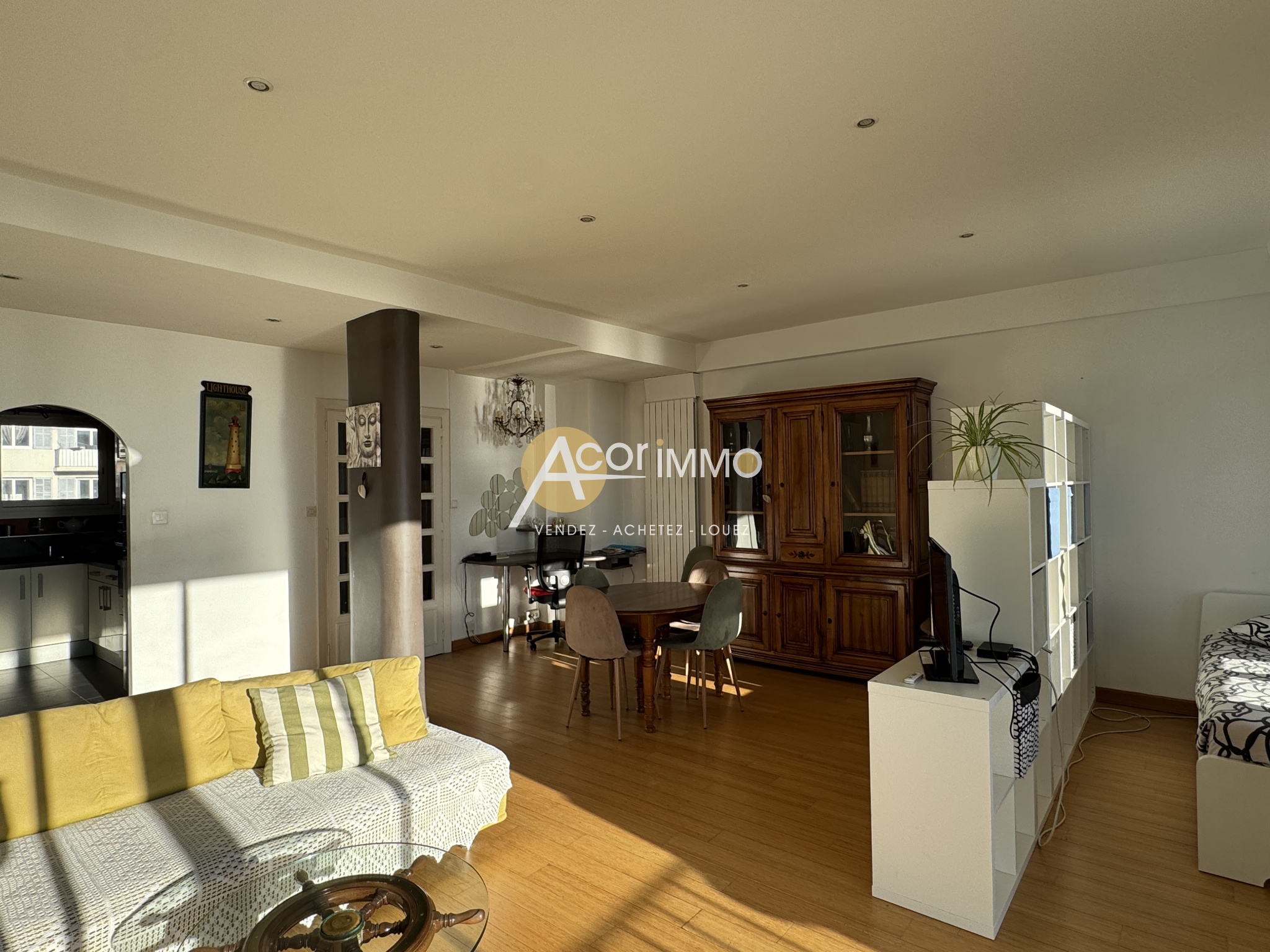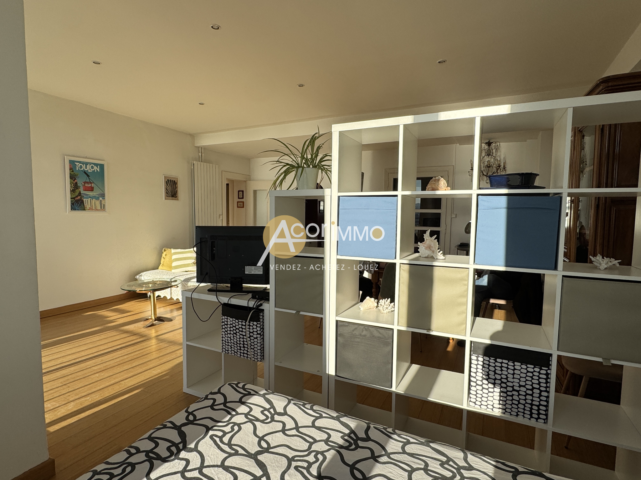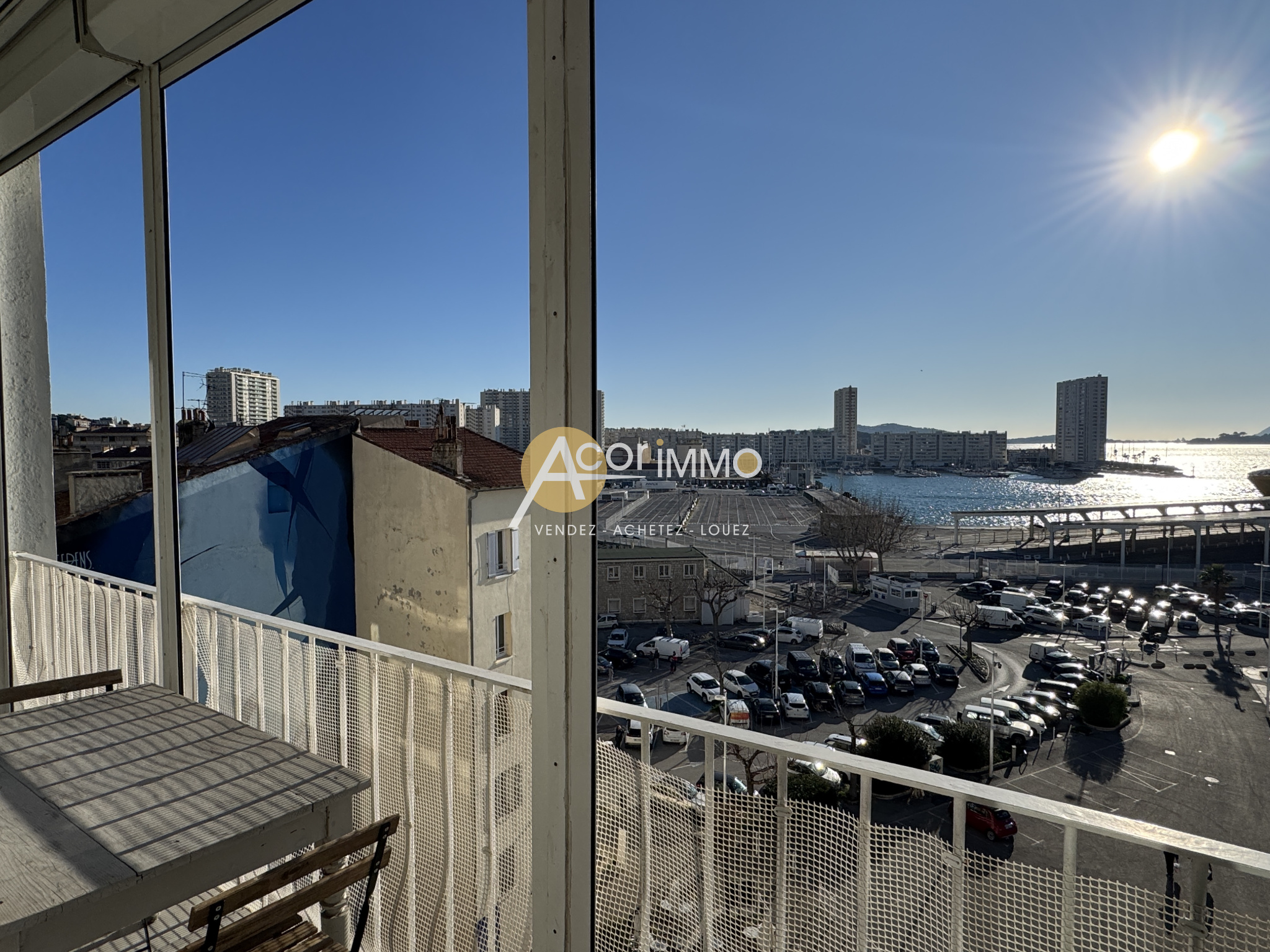 Sur le Port de Toulon, au 5è étage avec ascenseur, exceptionnel T2 de 71m2 comprenant : vaste séjour de 38m2, cuisine équipée séparée, une grande chambre de 14m2 climtisée et avec son dressing, salle d'eau avec buanderie, wc séparés. Terrasse de 10m2 que l'eau...