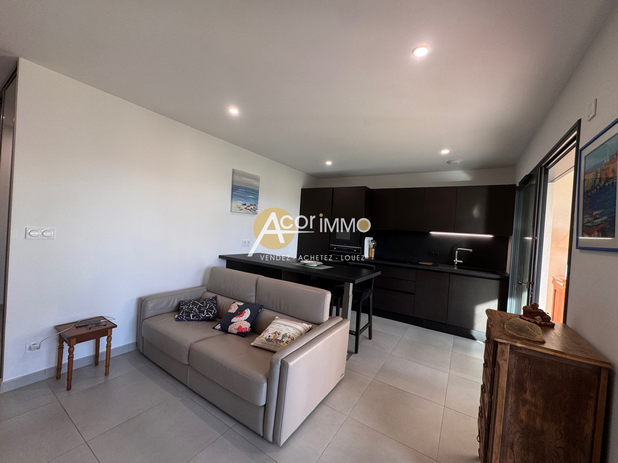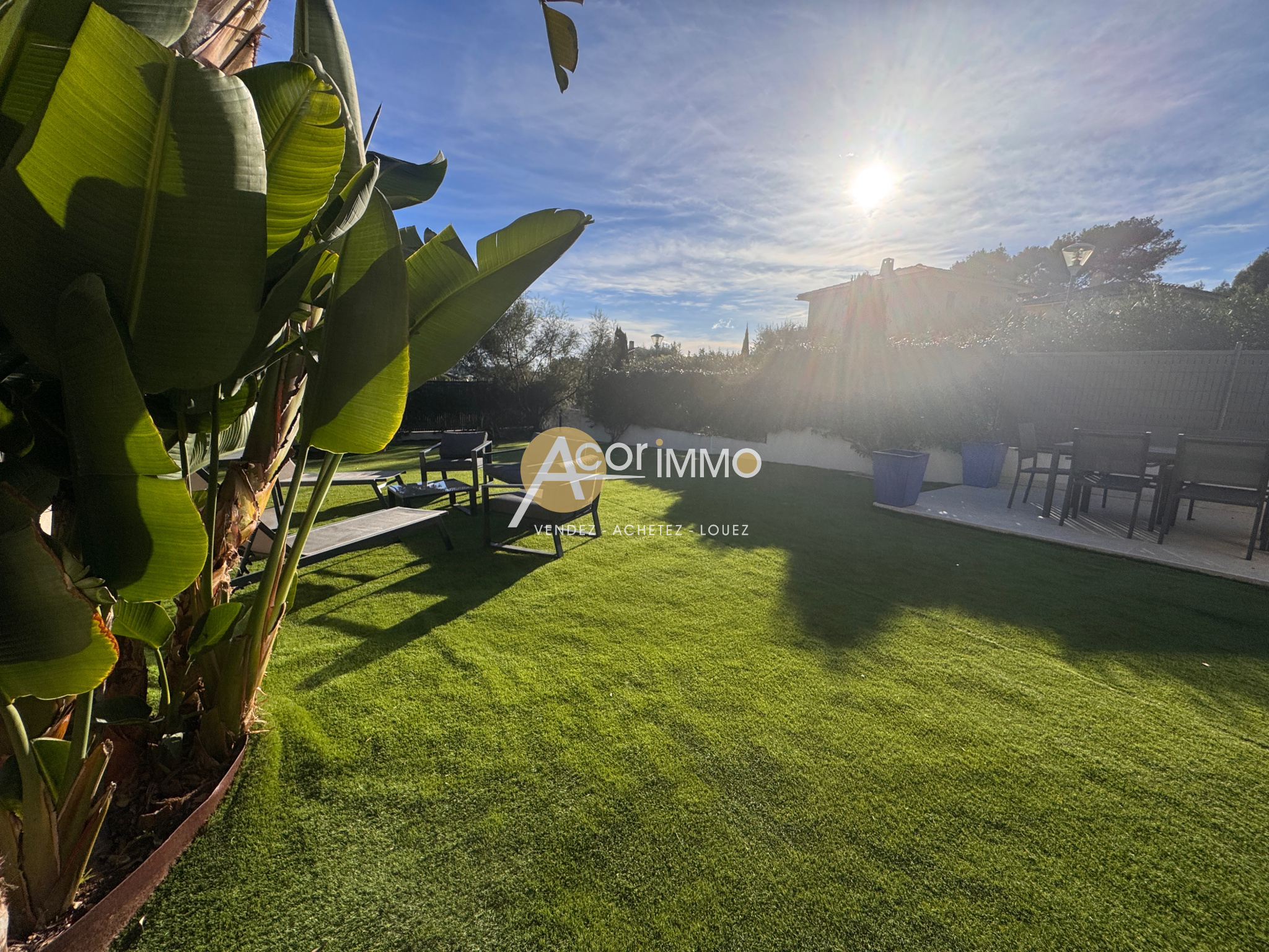 Dans une résidence intimiste de grand standing, découvrez ce superbe appartement T3 de 54 m2 habitables, agrémenté d’une véranda sécurisée de 16 m2 ouvrant sur un magnifique jardin privatif de 153 m2 exposé plein sud. L’entrée dispose de placards intégrés, la cuisine aménagée et équipée est ouverte sur un séjour lumineux. L’espace nuit comprend deux chambres avec rangements, une salle d’eau moderne et des toilettes séparées. Un garage avec rangements, une buanderie attenante ainsi qu’une place de parking privée complètent ce bien rare. Prestations de qualité ( climatisation réversible, alarme intérieur extérieur , arrosage automatique , volets éléctriques ) dans environnement calme et sécurisé, idéal pour profiter pleinement de la douceur de vivre à Sanary. Charges mensuelles : 15 € Taxe foncière : 1419 € DPE / C Contacter Aurélie NOARI : 06 83 23 11 04