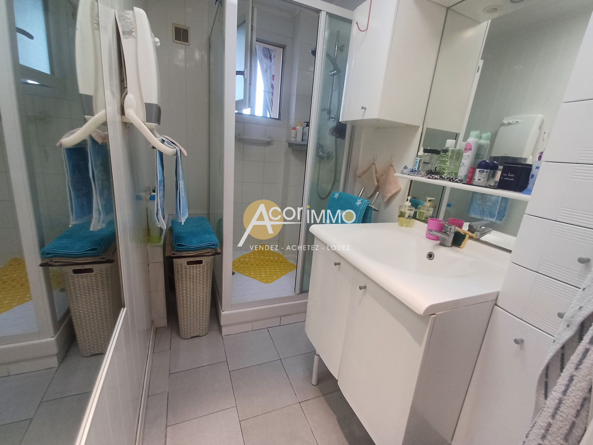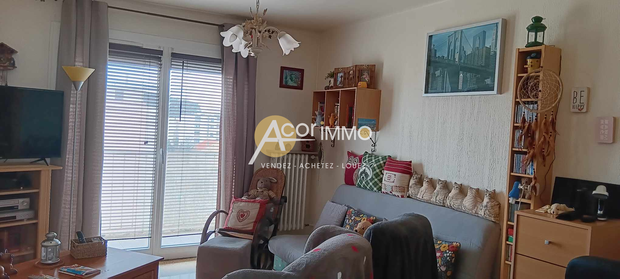 Le salon/séjour est équipé d'une clim réversible en plus du chauffage collectif. Double vitrage, volet roulants.