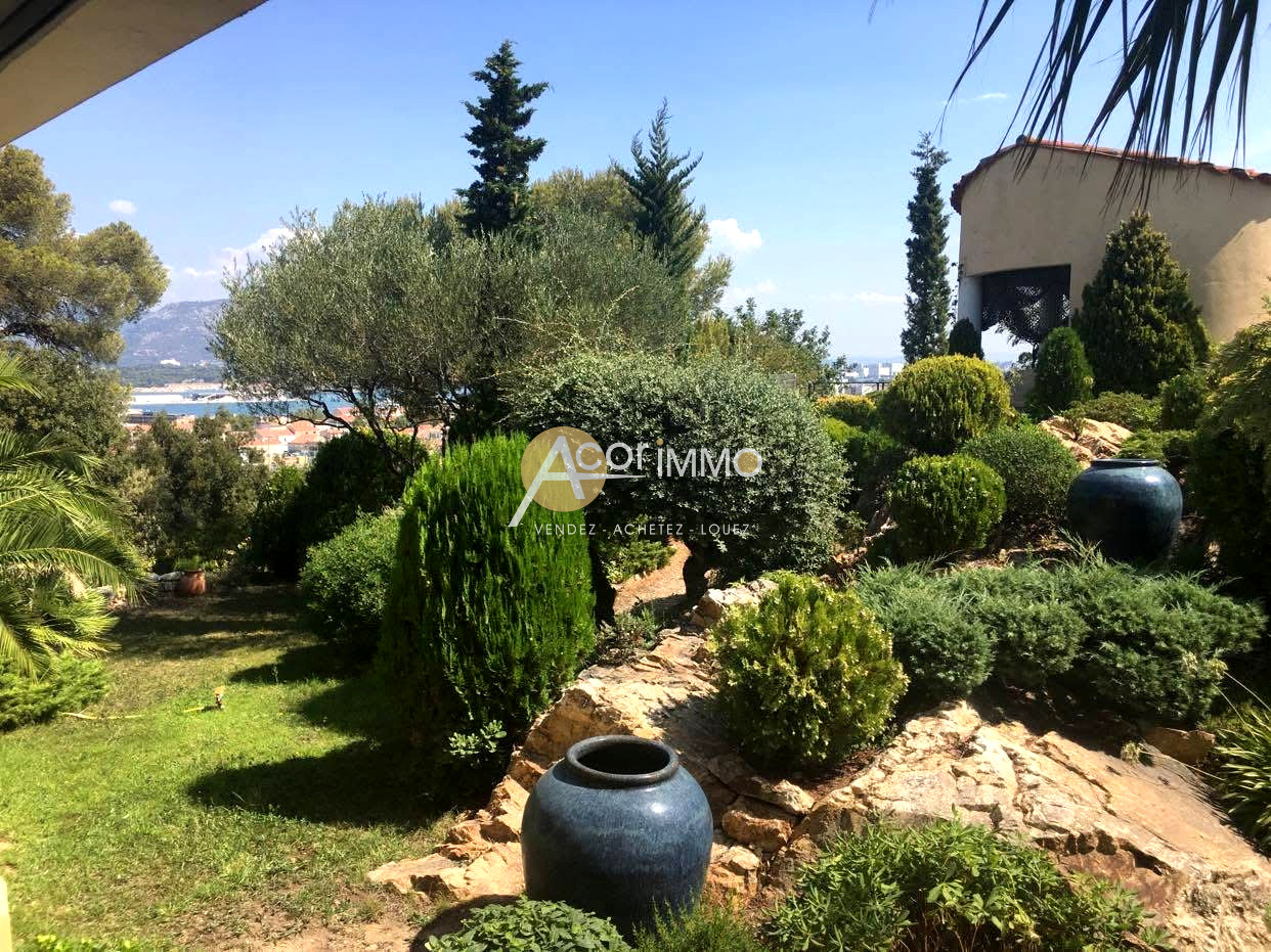 Nouveauté ACOR'IMMO ! Sur les hauteurs de LA SEYNE SUR MER, au calme le plus complet, superbe propriété d'environ 200 m2 habitables comprenant en rez de jardin 3 belles chambres donnant sur terrasse et piscine 5m x 10m, une salle d'eau, W.C, dressing, un dégagement, 2 grands celliers de rangement, un garage de 50 m2, une cuisine d'été. Dans la partie supérieur, avec accès par l'intérieur ou le jardin, vous trouverez une très belle pièce de vie d'environ 80 m2 avec vue dégagée sur Notre-Dame du Mai et cheminée insert, une cuisine équipée semi-ouverte avec terrasse, une grande chambre avec salle de bains et dressing donnant sur terrasse, un bureau, des W.C. L'ensemble sur 5 800 m2 de terrain arboré avec diverses terrasses, un ancien moulin ouvert en terrasse couverte avec vue sur la rade et les monts Toulonnais ! Aucun vis à vis et au calme le plus complet ! Double vitrage, baies à galandage ! DPE : D Contactez directement Stéphane COSTE au 06.58.04.45.78.