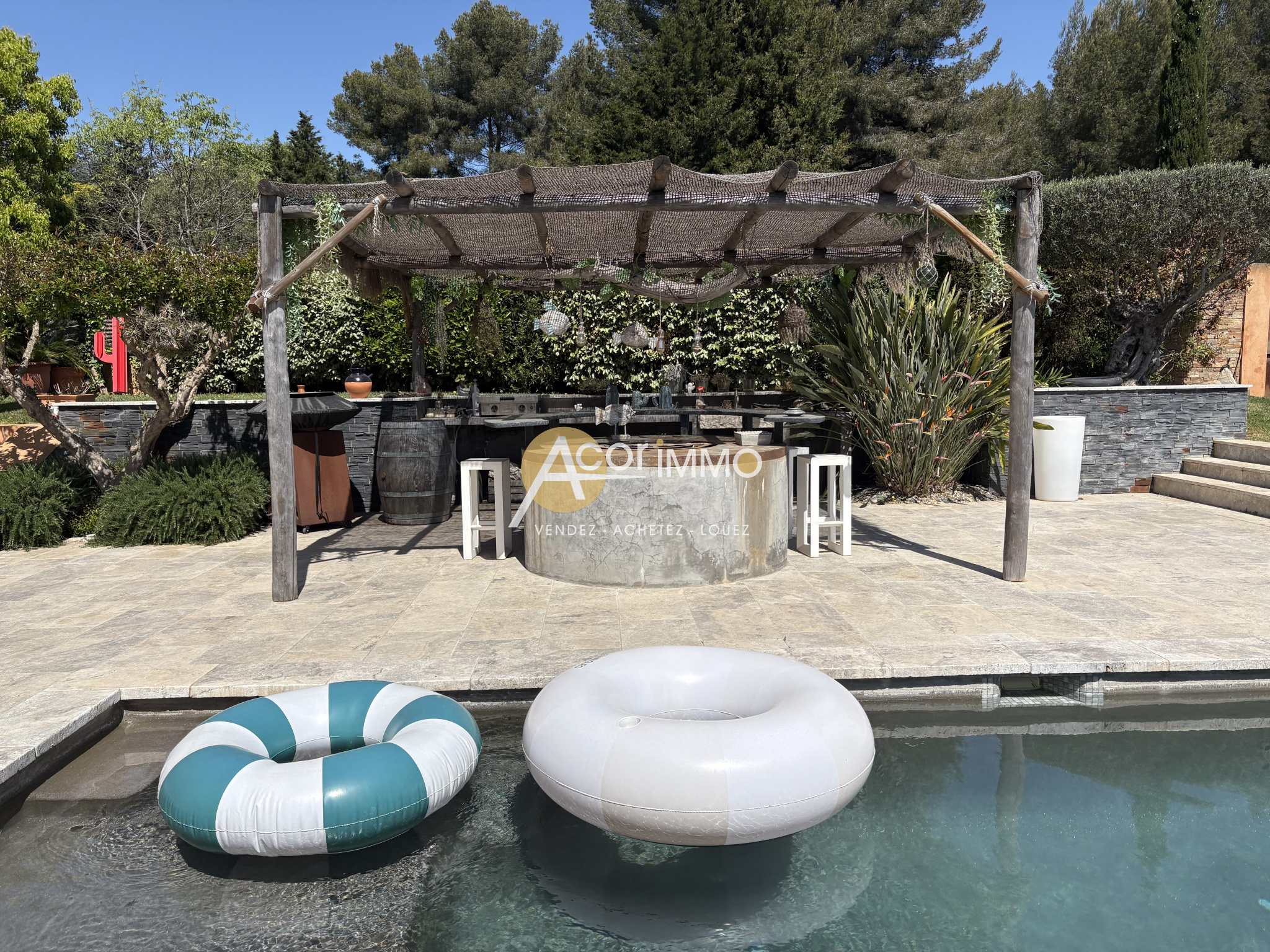 A proximite des commodités mais dans cadre campagne, à l'abri des régards et prêt à être habitée, cette maison de caractère à l'ambiance méditerranéenne allie parfaitement les materiaux anciens et le confort moderne. L'espace extérieur donne un air de vacances et l'intérieur chaleureux offre luminosité et sereinité. Le jardin est consu pour offrir une atmosphère paisible et raffinée. Un grand bassin de nage y est parfaitement intégré, entouré par des espaces de détente où chacun peut s'isoler ou se retrouver avec ses amis. Cette propriété ne pourra que séduire l'âme à la recherche de tranquillité et bien être. Sa situation permet d'acceder rapidement aux commerces, au village et à la mer tout en restant à l'écart des nuisances. Un bien rare et unique. Pour visiter contactez-moi : Susanna VACHER 06 16 75 12 28