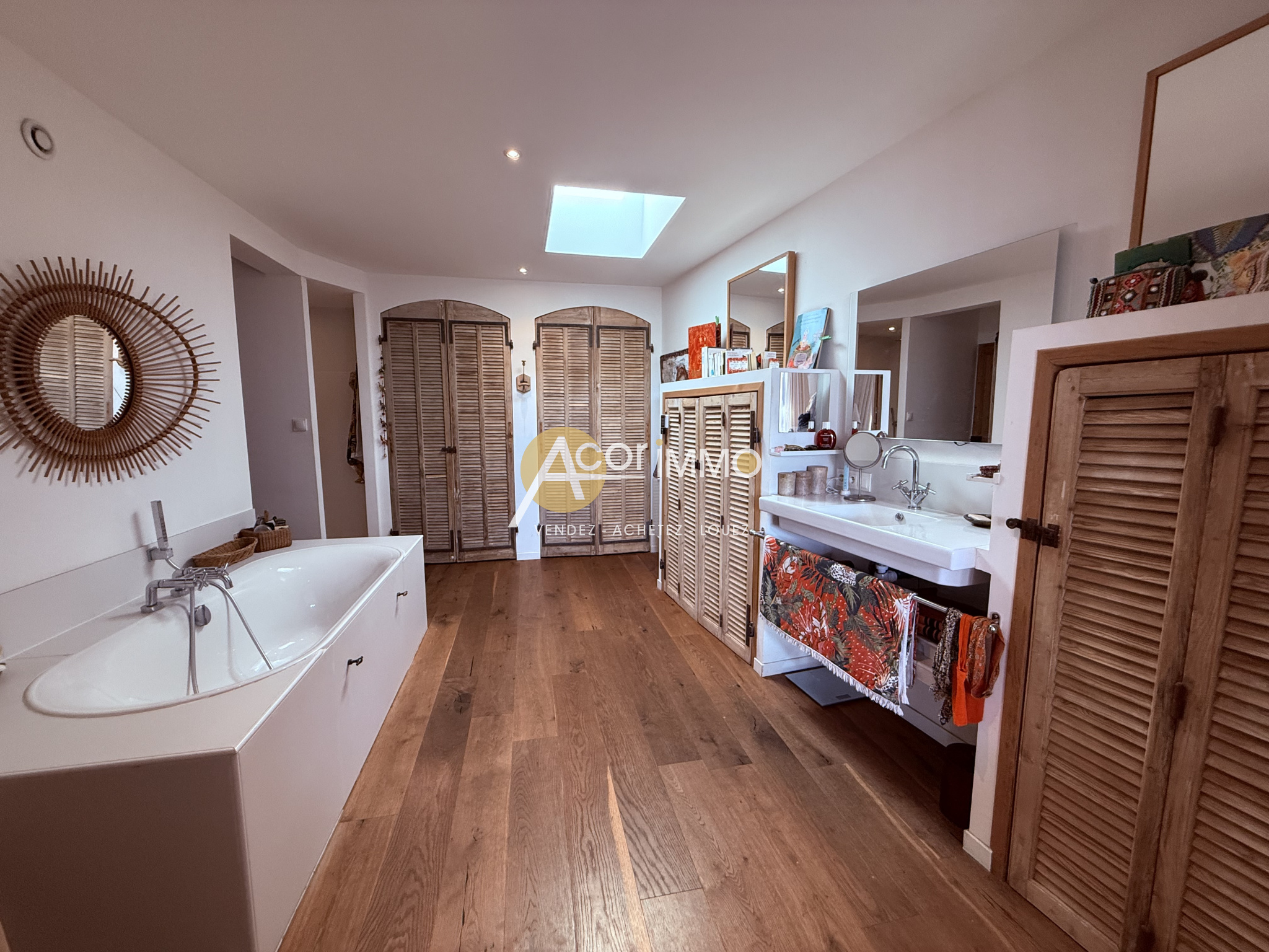 Dans le quartier renommé de Portissol à Sanary/Mer, découvrez cette maison d'architecte de plain pied édifiée en 2016, à seulement 300m du port et 700m de la plage. Cette propriété de 220m2 offre un cadre de vie exceptionnel. L'espace de vie principale est une vaste pièce lumineuse de 88m2 avec cheminée, espace salon et bureau, prolongée par de grandes baies vitrées ouvrant sur une grande terrasse orientée sud et ouest. La cuisine américaine équipée ravira les amateurs de convivialité. La maison dispose de 4 chambres dont une suite parentale de 30m2 avec dressing, salle d'eau et baignoire, deux chambres de 20 et 17m2 avec accès direct à une salle d'eau commune, ainsi qu'un studio indépendant de 30m2. Un garage 2 roues de 27m2 complète ce bien rare. Le tout sur un terrain arboré de 1168m2, sans vis-à-vis, garantissant un calme absolu dans un écrin de verdure. Contact : Christine BELLANGER 06.79.54.42.45