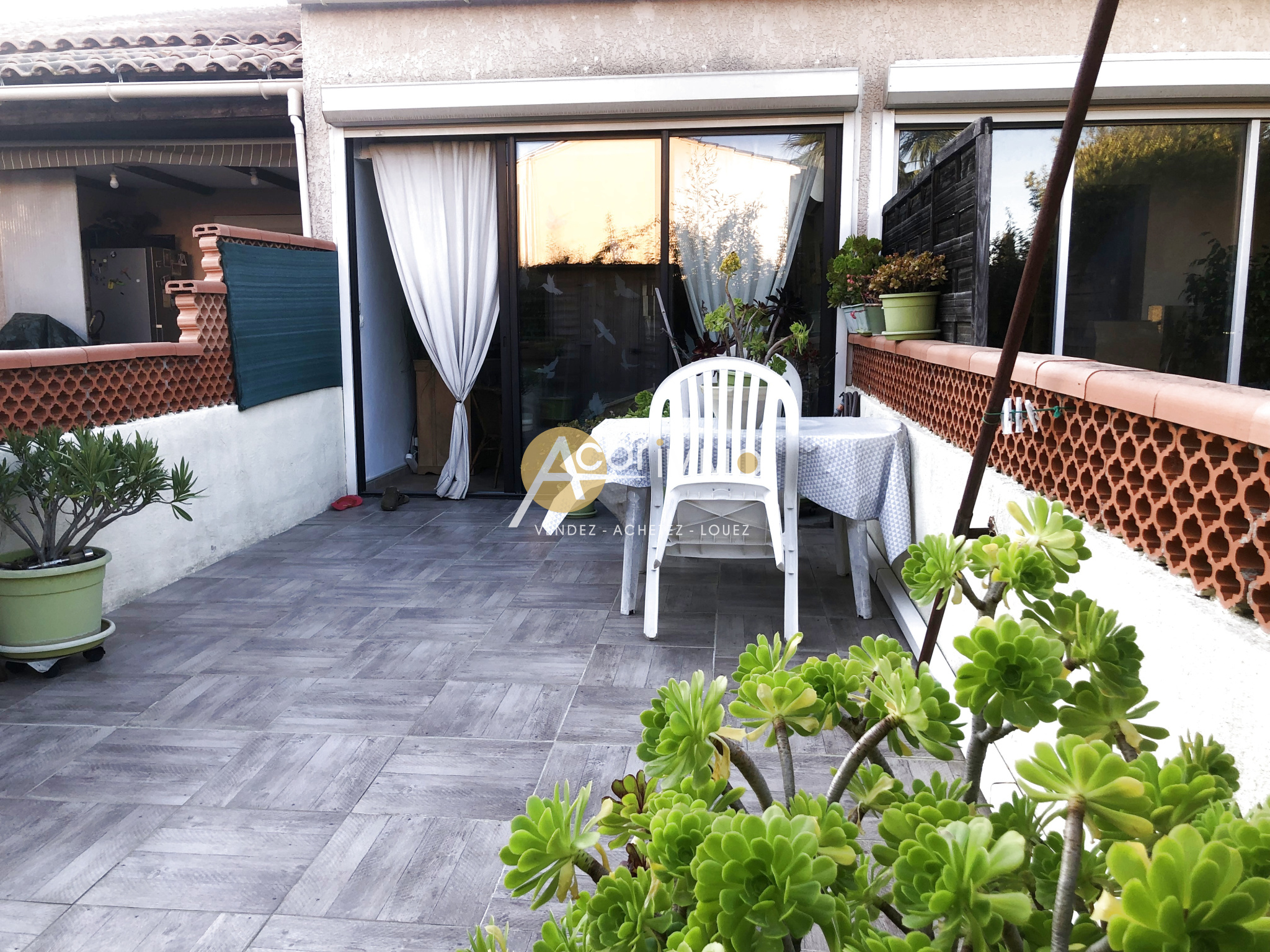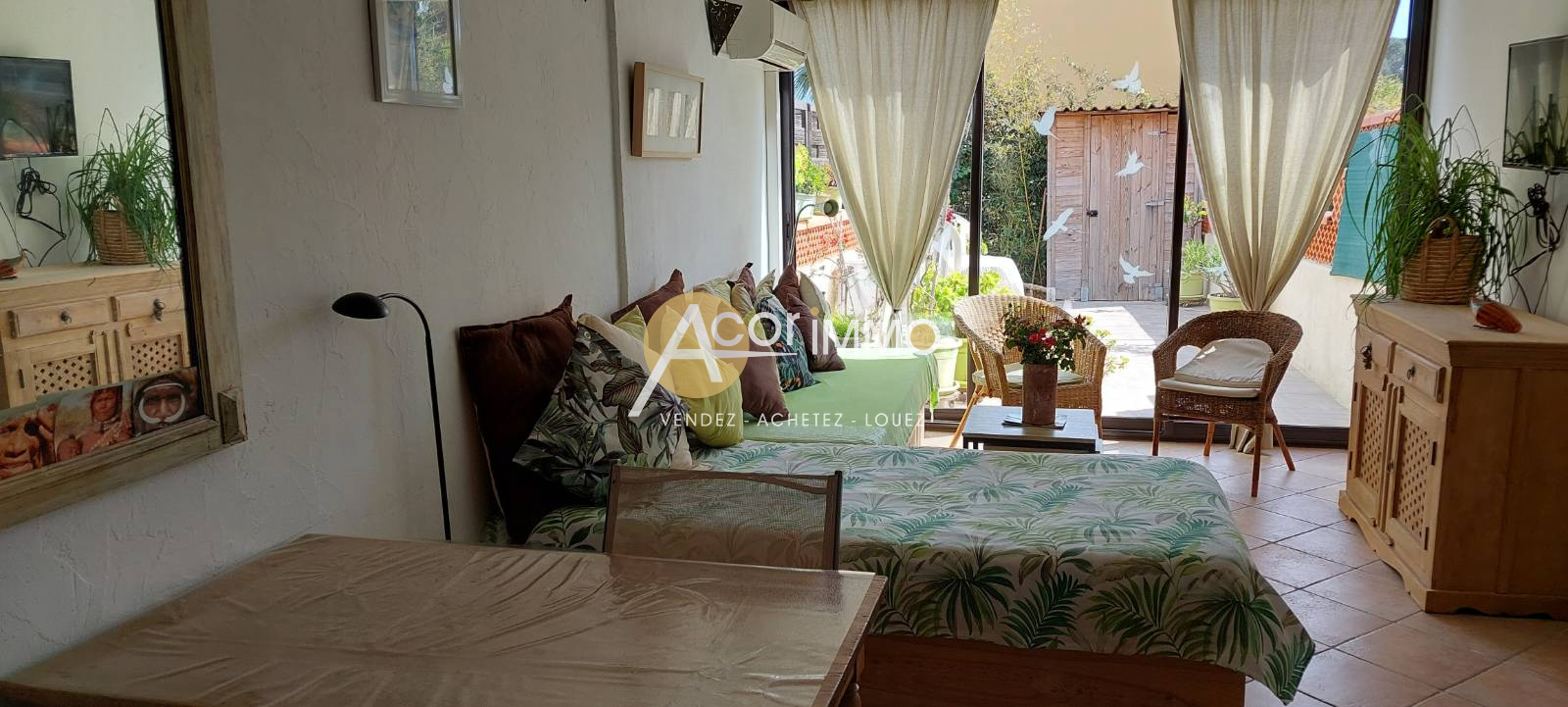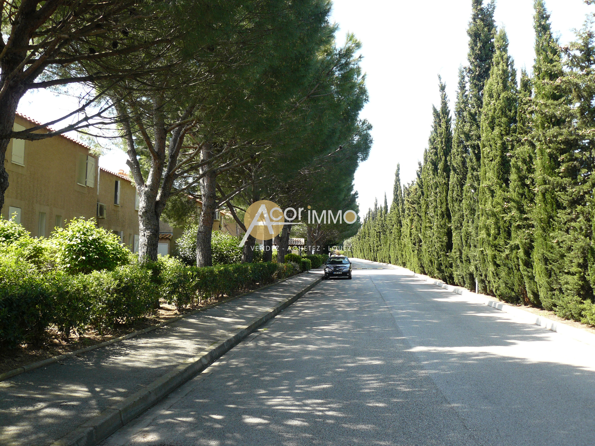 Dans cadre paisible d'une résidence avec piscine à 10 minutes à pied de la mer, adorable maison club, bon compromis entre maison et appartement, au calme, composée d'un bel espace jour ouvert sur une grande terrasse ensoleillée. A l'étage 2 petites chambres et une salle d'eau. Propre et bien aménagée elle sera un nid douillet pour les vacances ou jeune couple en principal. Une place privative complète ce bien prêt à être habité. La résidence est sécurisée et offre également nombreuses place de parking visiteurs. Le plus des faibles charges de copropriété.