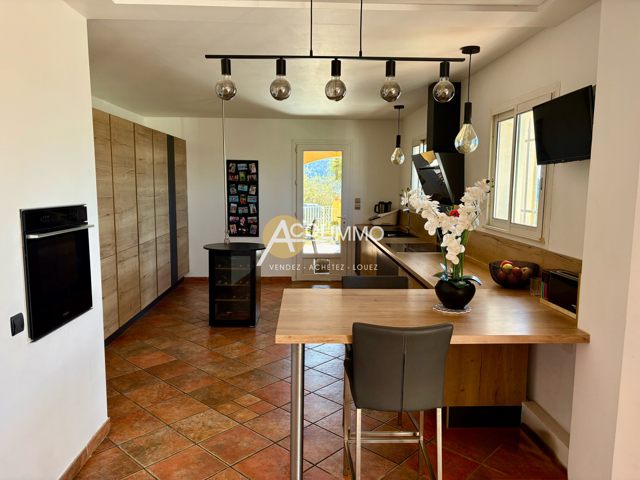 La cuisine contemporaine entièrement équipée s’intègre avec sobriété et raffinement à l’espace de vie, pensée pour conjuguer esthétique, confort et convivialité.