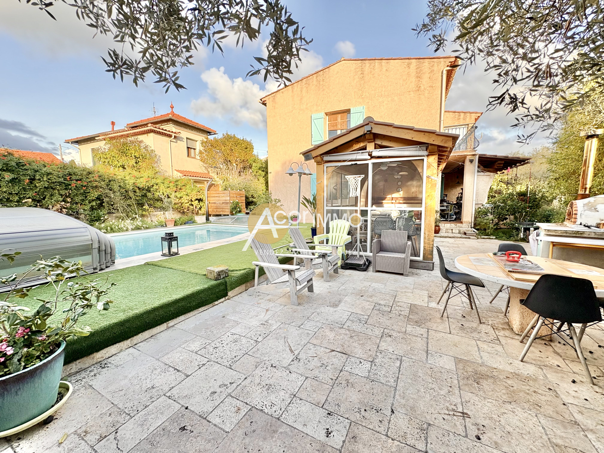Elle bénéficie du double vitrage, de climatisation réversible, d'un four à pizza, de cabanons extérieurs...